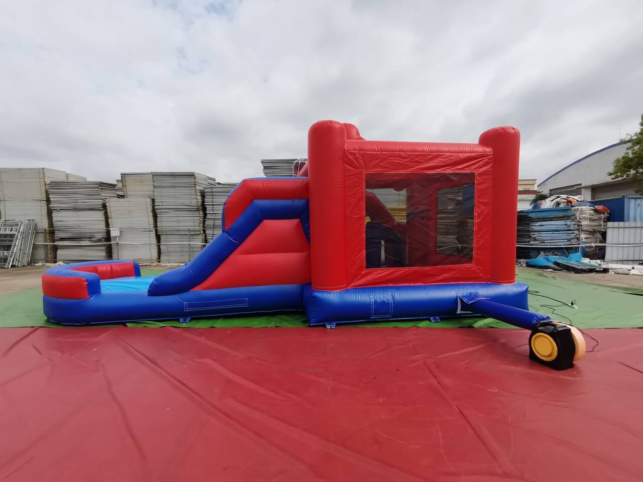 Velkou skákací plochu, překážky a skluzavku s bezpečným dopadištěm